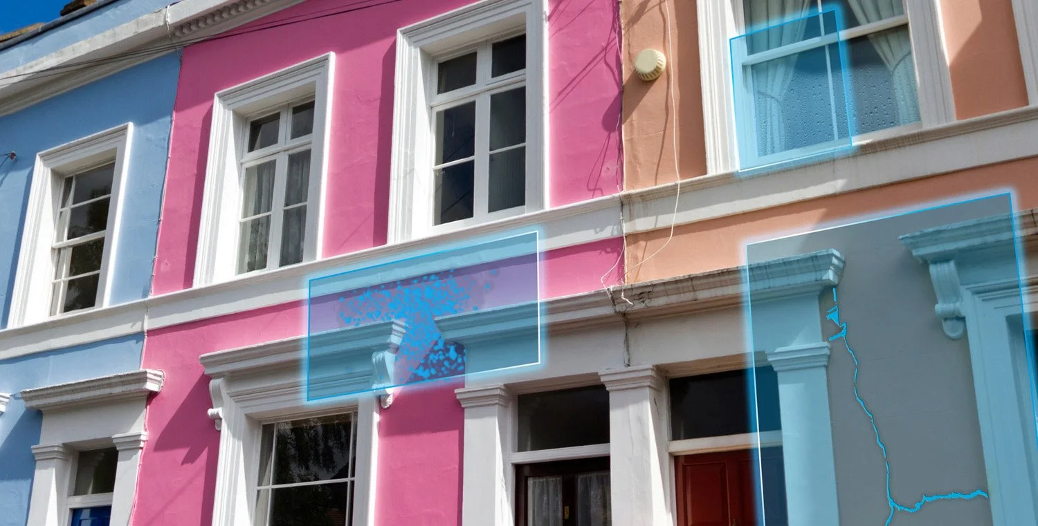 Computer vision uses image processing algorithms to detect and categorise defects in building structures. By analysing images captured through various means, such as drones, handheld devices, or fixed cameras, computer vision can identify cracks, moisture intrusion, and other anomalies that may not be visible to the naked eye. This capability allows for more accurate and comprehensive defect detection, enhancing the quality of building assessments.